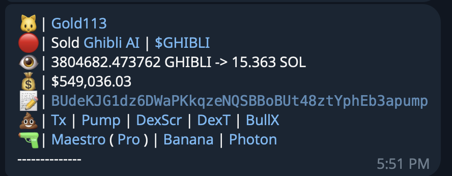 * Notifications: Once a wallet is tracked, the bot sends you notifications whenever there are transactions—like when the wallet buys or sells tokens. You also have options to toggle these notifications on or off using commands like /togglebuy and /togglesell.